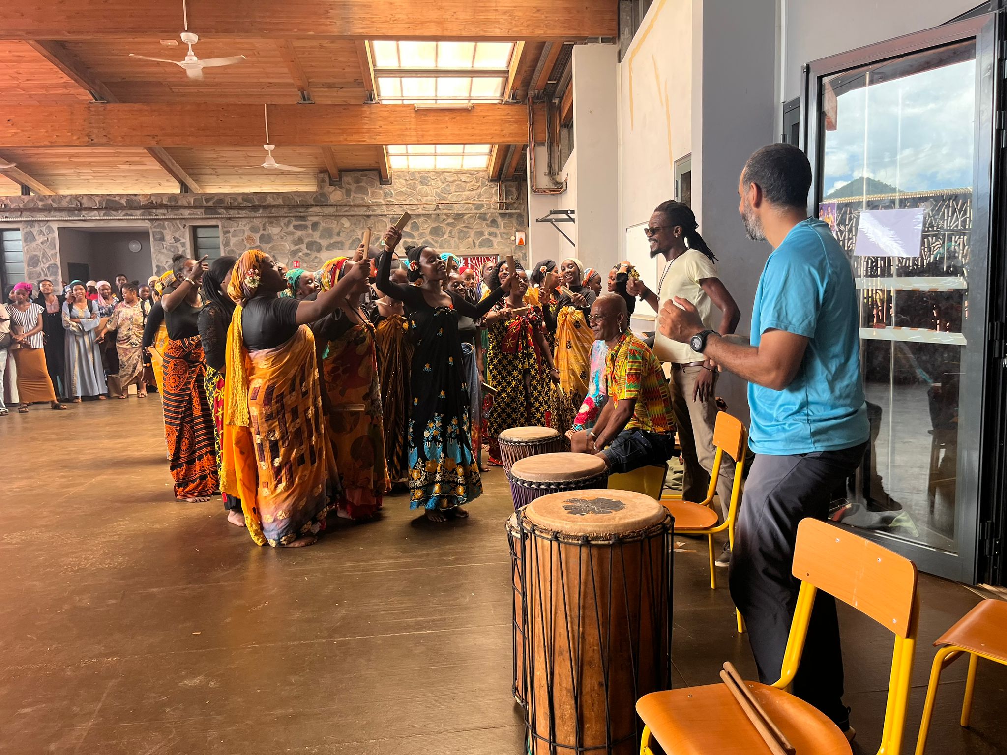 L’événement a débuté avec l’intervention des musiciens de percussions africaines de l’Zina na Wassi, qui ont fait vibrer le gymnase du lycée par leur énergie communicative. Très rapidement, les élèves se sont laissés emporter par l’ambiance chaleureuse et rythmée du spectacle.